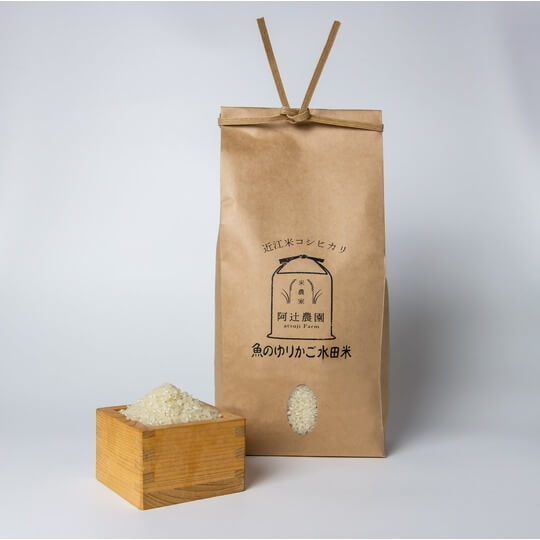 「魚のゆりかご水田米」は、滋賀県が認証する環境にやさしいブランド米。このロゴ入り商品は、自然を守る農法と確かな品質の証です。“食べることでびわ湖を守るお米”として多くの人に選ばれています。