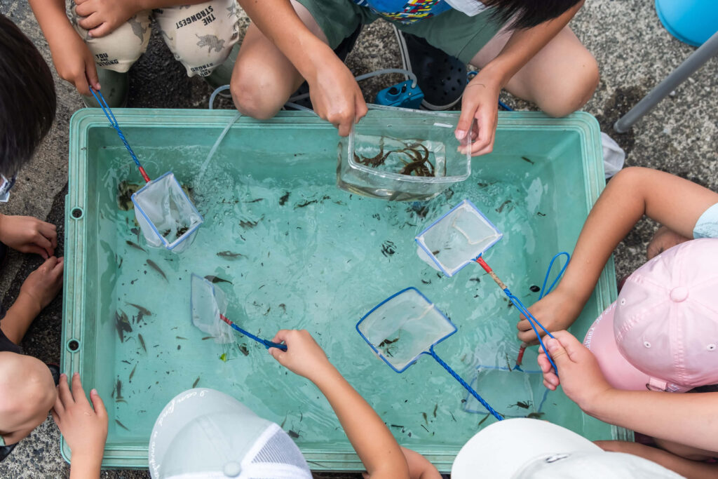 専門家を招き、魚や水草を観察しながら「この魚はどんな暮らしをしているの?」「水はどこから来て、どこへ流れるの?」といった問いを通して、自然と農業のつながりを体験的に学ぶ場をつくっています。夏休みの自由研究にも人気のイベントです。