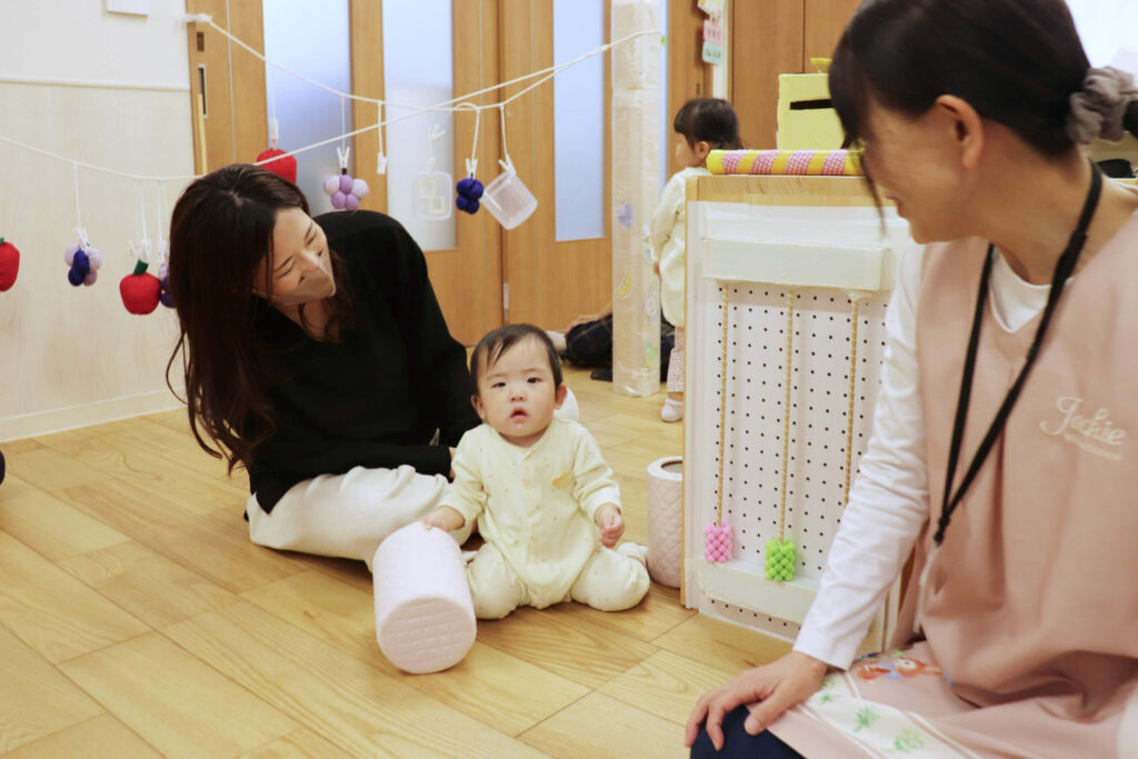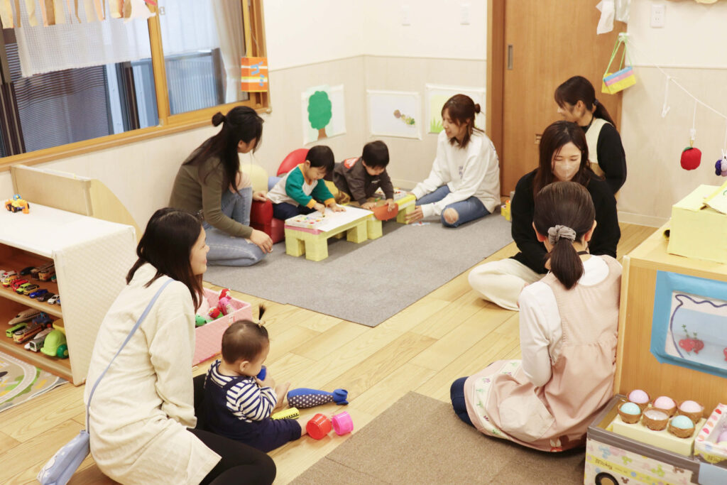 ここは利用者さん同士の雰囲気もとても良いんです。お母さん同士が声を掛けあって、初めての方も絶対一人にしない、そんなあたたかな雰囲気があります。8組ほどでいっぱいになる規模感なので、2人目の赤ちゃんを連れてきたときには「抱っこさせて〜♡」と他のお母さんたちが言える距離感で上手に関わってくれています。