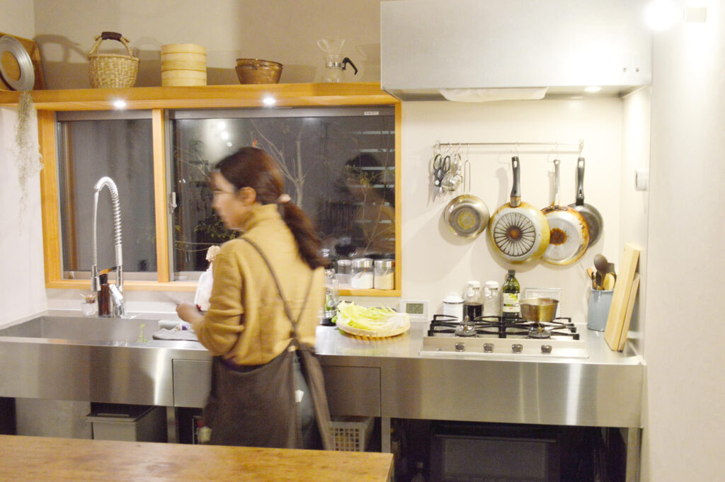 設計は、妻がSNSで見つけた設計事務所にお願いしました。妻の理想をたっぷり詰め込んだ家になっています。特に気に入っているのはキッチンとダイニングだそうで、天井を少し低くして、床はモルタル仕上げに。洞窟のような“こもり感”のある雰囲気が落ち着くと言っています。古民家のような雰囲気が好きで、濃いブラウンの木材を使い、壁は塗り壁にしてもらいました。