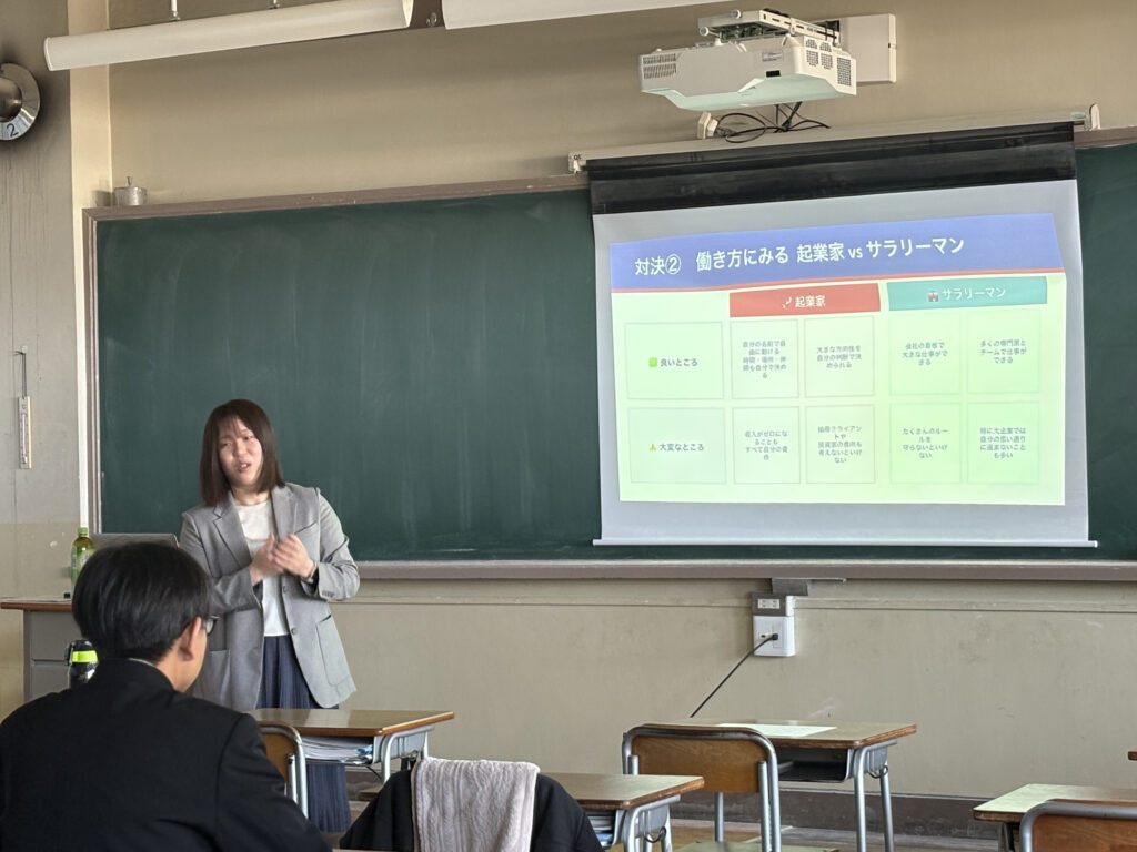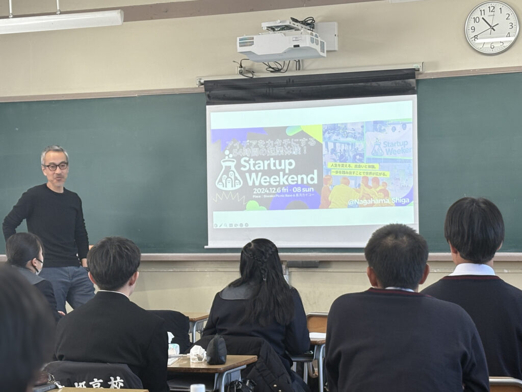 東京-長浜リレーションズの活動の一環として、虎姫高校で実施しているアントレプレナーシップ講演会。